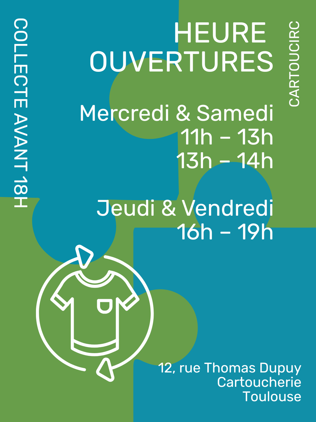 Nous avons ouvert une première boutique friperie : la BoutiC au 12 rue Thomas Dupuy à la Cartoucherie : accès facile à 5 min de la ligne de tram, station Cartoucherie ou à 20 min en vélo depuis la place du Capitole.