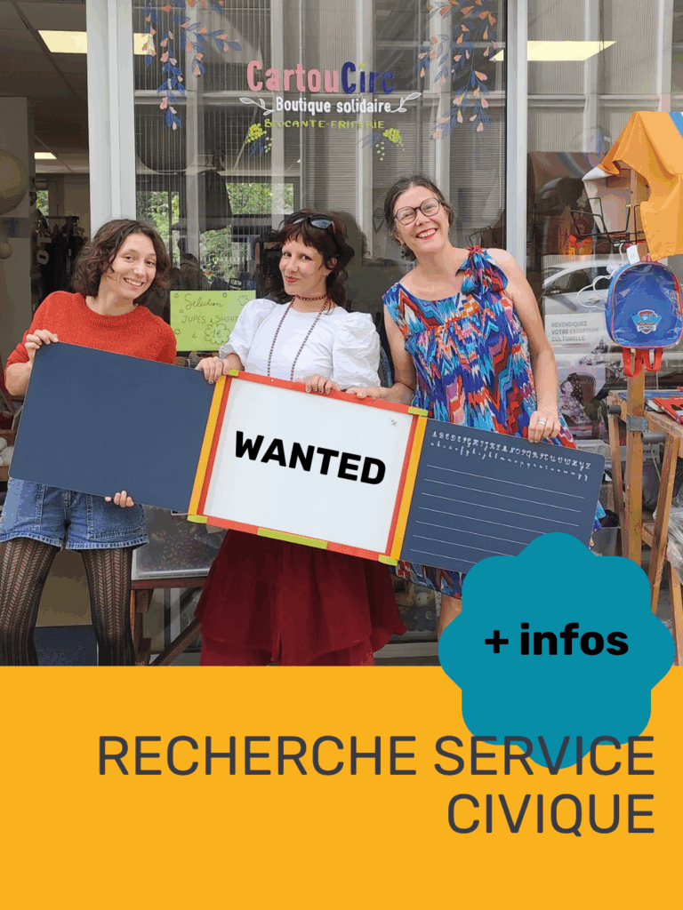 Les permanent·es et bénévoles de l’association organisent le vide-greniers, fête de l’économie circulaire et solidaire, devant la Halle de la Cartoucherie, sur la place de la charte des libertés communales. CartouCirc y propose vêtements et objets de seconde main. Vous pouvez les retrouver dans notre agenda en ligne.